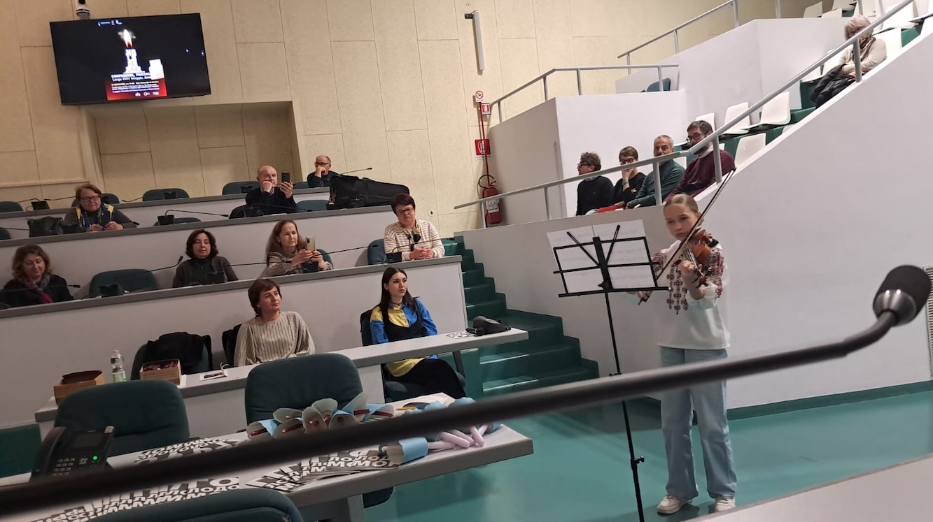 Subito dopo, la giovane musicista Sofia Onyshchak ha eseguito la Melodia di Myroslav Skoryk, rendendo omaggio con la musica alla memoria dei milioni di innocenti che morirono a causa della fame pianificata.